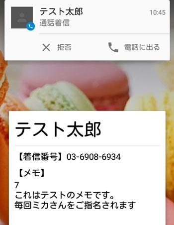 CTIシステムの顧客データを自動的にGoogle連絡先に取り込む機能です。スマホ着信時に、顧客データ(名前・フリガナ・会員番号・分類・メモ)が表示されるようになります。