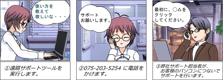 弊社のシステムを利用していて、トラブルが起こったときや疑問点が生じたときは、いつでも電話でご連絡ください。