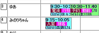 女の子の出勤時刻を予約スケジュール画面上に表示することができます。