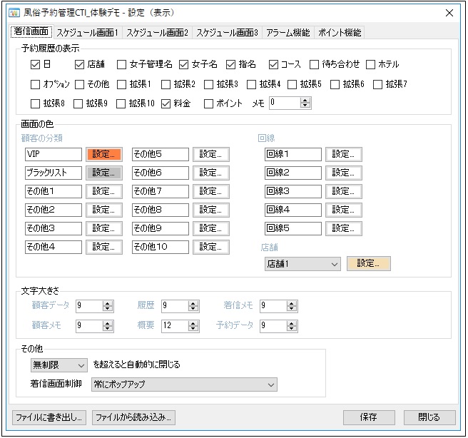 着信画面の色や予約履歴の項目をカスタマイズすることができます。