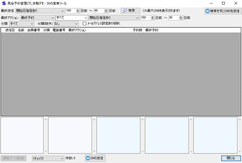 様々な条件でお客様を絞り込んで、営業用のSMSを送信することができます。