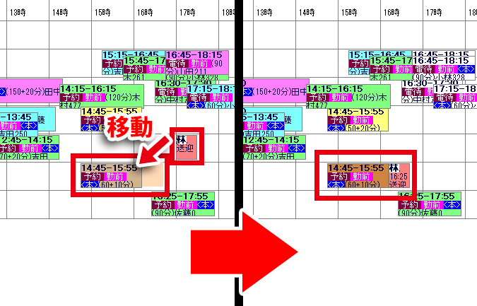 ドライバー情報はマウス操作で簡単に動かすことができます。予約の前後にくっつけることもできます。