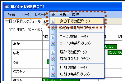 女の子ごとの売上分析(数値データ)画面が開きます。