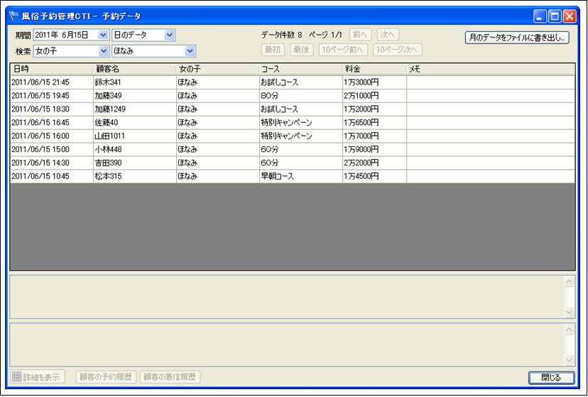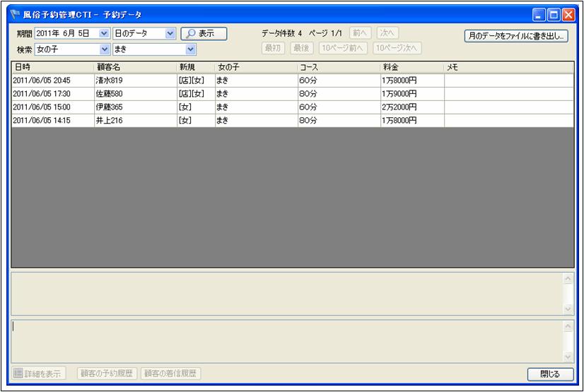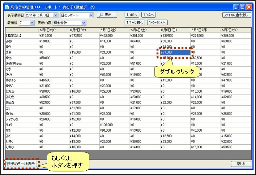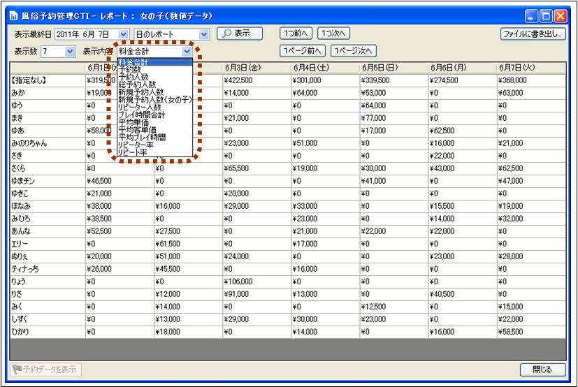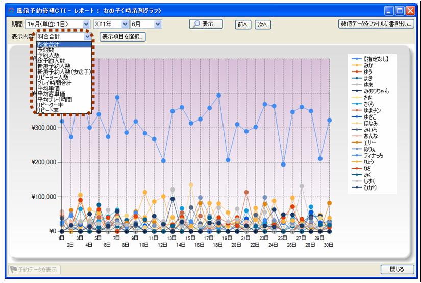 | 料金合計 | 女の子の予約の料金の合計です。 女の子がどれくらい売上をあげたかを示します。 |
