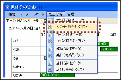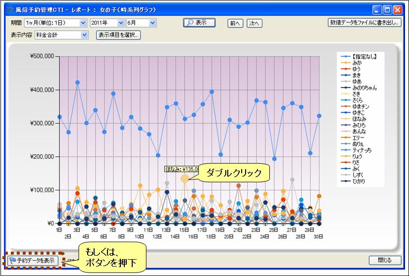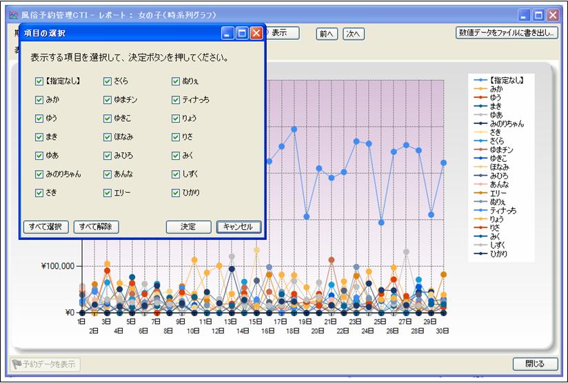 女の子ごとの売上分析(時系列グラフ)画面が開きます。