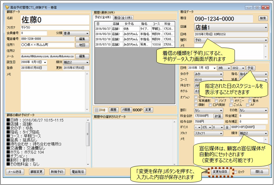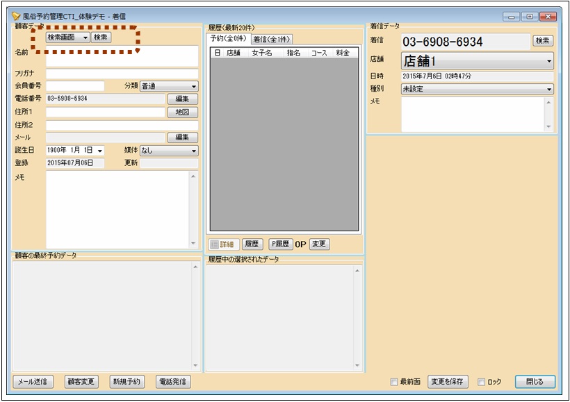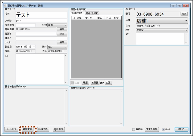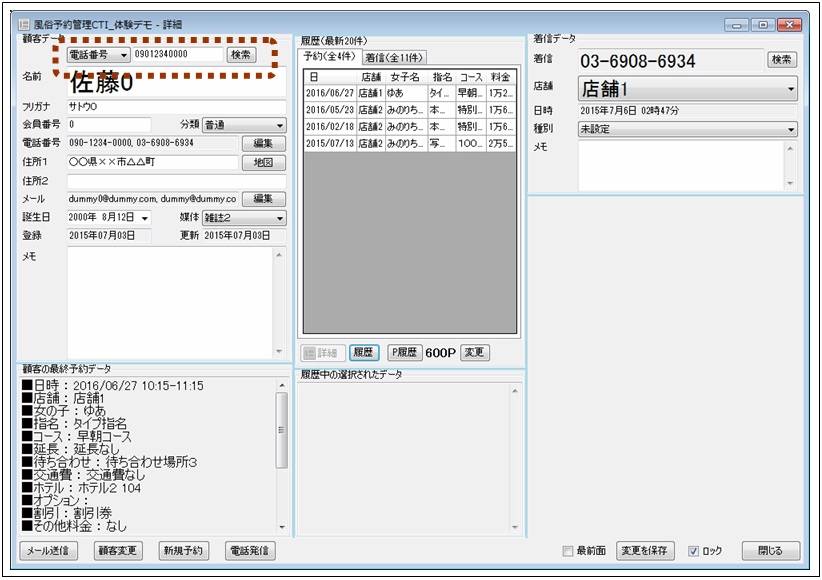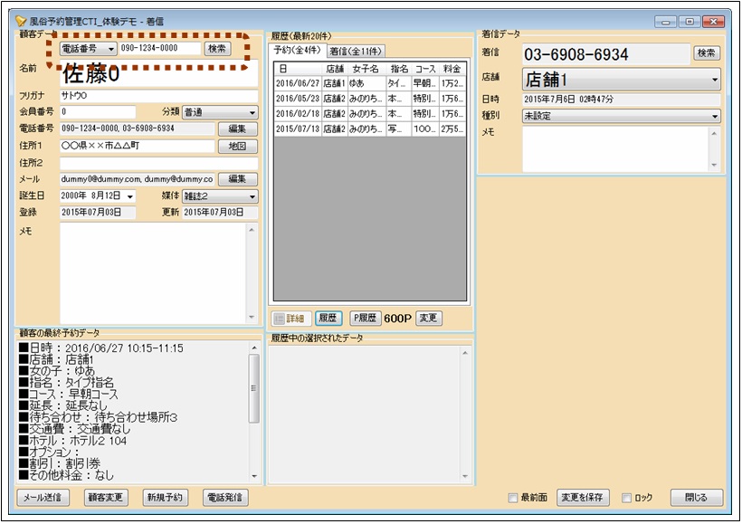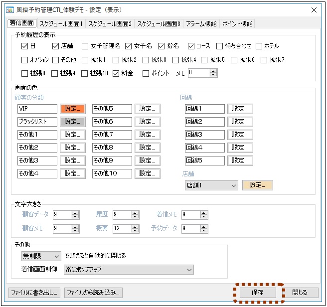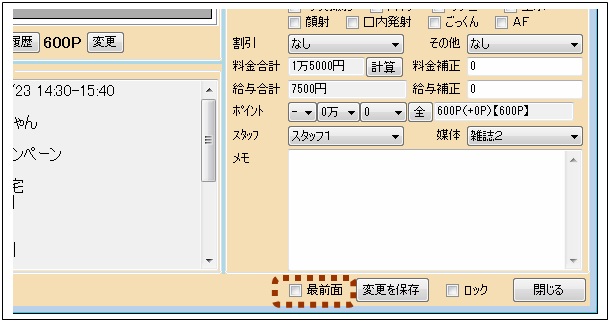 最前面のチェックを入れると、ウィンドウが最前面に固定されます。次々に電話が鳴ってどのウィンドウを操作しているかが分からなくなる場合に便利です。