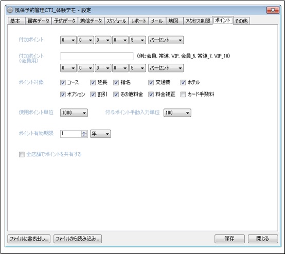 3. 「付加ポイント」「利用ポイント単位」「ポイント有効期限」を設定して、設定を保存します。