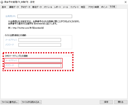 2. 「テンプレート」タブから「SMS(予約連絡)」タブを開き、予約連絡に使う文章(テンプレート)を入力します。
