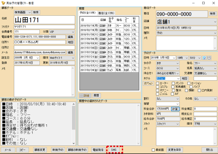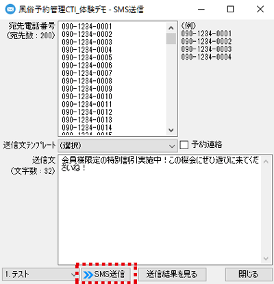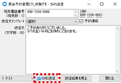 7. 「SMS送信」を押すと、SMSが送信されます。