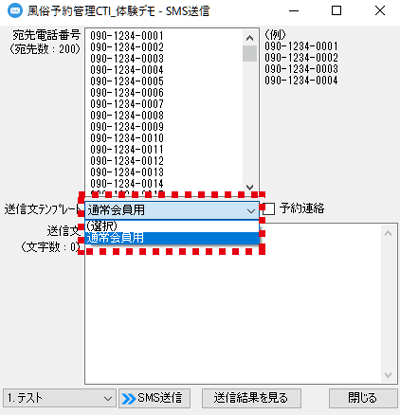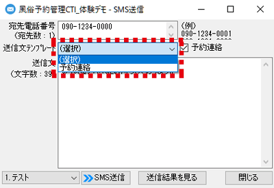 6. 「送信文テンプレート」から送信したいメッセージを選択します。