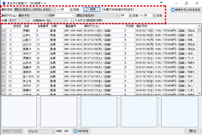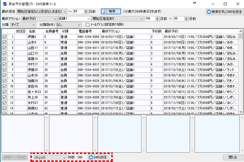 5. メッセージを送信したい顧客にチェックを入れ、「SMS送信」ボタンを押します。