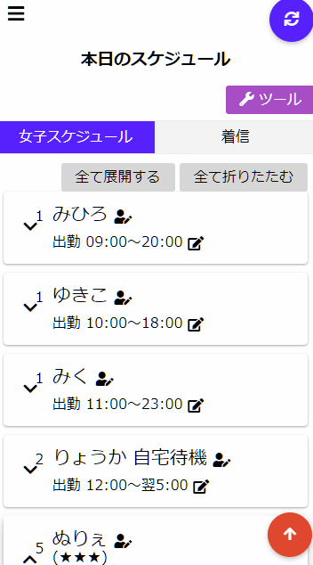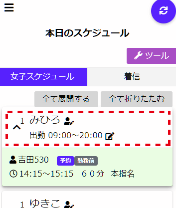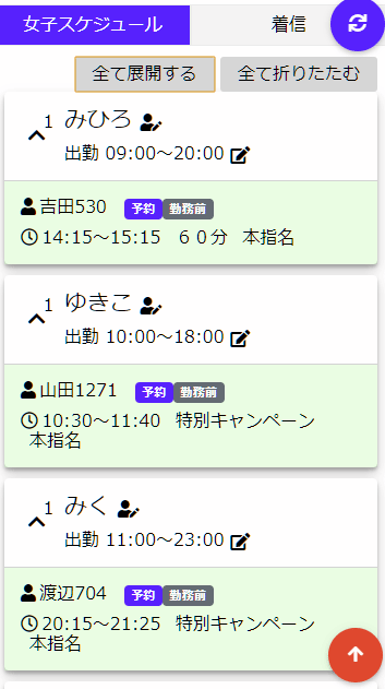 すべて展開ボタンを押すと、すべての女子の予約データを表示することができます。