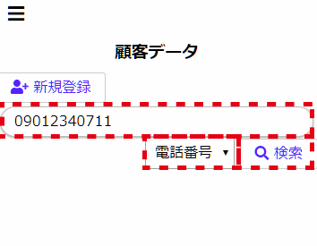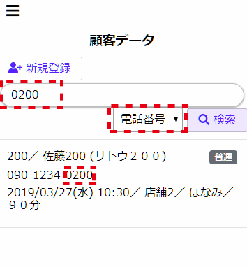 電話番号の検索時に、4桁の数字を入力して検索すると、電話番号下4桁の検索になります。