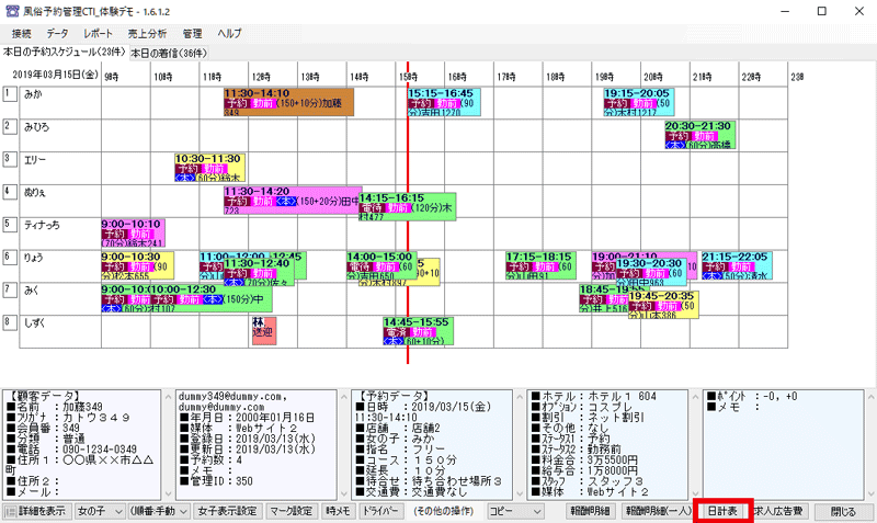 4. 予約入力画面の「予定」ボタンを押すと、スケジュール画面を開くことができます。