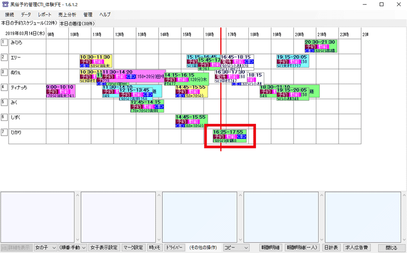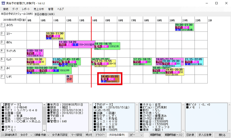 変更が保存され、メイン画面の本日の予約スケジュールに予定が追加されます。