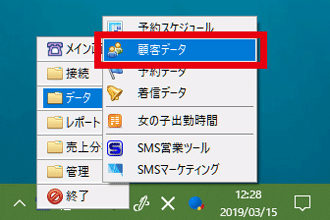 顧客データ画面は、タスクトレイのメニューから開くこともできます。