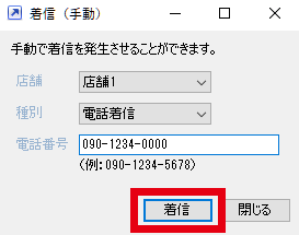 着信(手動)画面が開きます。
